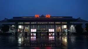 Tongxiang railway station is a railway station on the Shanghai–Hangzhou high-speed railway located in northern Zhejiang, China. It is located south of Tongxiang, a city in Jiaxing Prefecture. It has two platforms, and is only served by high-speed EMU G and D trains. It opened on 26 October 2010.[1]
