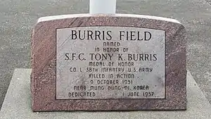 - ↑ ""TONY K. BURRIS" entry". Medal of Honor recipients: Korean War. United States Army Center of Military History. June 8, 2009. Archived from the original on 2009-03-10. Retrieved 2007-12-30.
