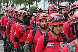 The group maintains ties with the International Rescue and Assistance League in France and the United Firemen without Frontiers in Spain.[4] It also has associates in the United States, El Salvador, Bolivia, Peru, Germany and Indonesia.[5] Within Mexico, the group coordinates with social organizations and government agencies such as the Secretary of the Navy, the Secretary of Defense and the Secretary of the Interior. However, their longest association is with the government of Mexico City, whose professional ambulance corps along with the Mexican Red Cross assisted with the initial training of rescue dogs.[4]