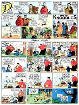 - Barney Google – Bughouse Fables (1926), Bunky (originally Parlor Bedroom and Sink, 1926-1948), Knee-Hi-Knoodles (single panel, 1934-1935)[8]