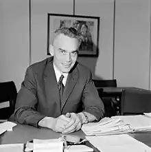 He left the Cancer Registry in 1971 to become State Secretary in the Ministry of Social Affairs. He represented the Labour Party, and had been a municipal councilman in Asker from 1968 to 1975.[1] Reportedly, he was appointed because the Minister of Social Affairs, Odd Højdahl, had his strengths in general administration, and was lacking in knowledge about social policy.[3] Mork was only State Secretary until 1972, as the first cabinet Bratteli fell.[4] In 1972, however, he was appointed as director of the Norwegian Directorate for Health, succeeding the legendary Karl Evang.[1] Evang himself had made a halfhearted attempt to promote Jon Bjørnsson as successor. Besides Mork, the only likely candidate was Gudmund Harlem.[5]