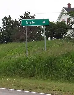 Direction sign for Toronto on Route 13 in Mayfield