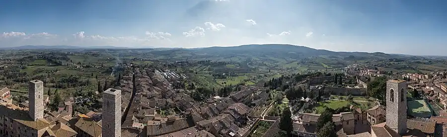 ![]() Torre Grossa and Collegiate Church of San Gimignano in the piazza del Duomo. | |