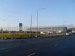 The centre was built on old red blaes (gravel) playing fields used by Queen's Park Secondary School (closed 1994); some of the land may have been contaminated with toxic chromium waste from a local chemical works. The culverted Malls Mire Burn flows beneath the site. A large supermarket and a regional police headquarters are located nearby.