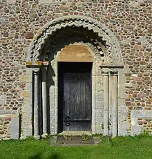 The parish church of St Michael (St Mary in earlier records) dates to the twelfth century and is grade II* listed.[7] Toseland Hall is a seventeenth century grade II* listed manor house to the west of the village centre, built from brick with a tiled roof.[8][9] The Manor is two stories high and contains attics and the moulded bricks are constructed with a geometric pattern.[10] It was built by Nicholas Luke around 1600 who was at the time was also the lord of the manor and has been owned by various prominent figures such as Dean of Ely Cathedral in 1624.[11] During the 1881 census the property was occupied by Alfred Maine who was a farmer that owned more than 350 acres of land and since then has been used for agricultural purposes such as cultivating land.[12]