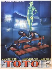 Toto is a 1933 French comedy film directed by Jacques Tourneur and starring Albert Préjean, Renée Saint-Cyr and Félix Oudart.[1] It was shot at Pathé's Joinville Studios in Paris. The film's sets were designed by the art director Jacques Colombier.