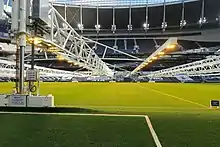 The stadium features the world's first integrated grow lighting system over the pitch. Grow lights are suspended on six 70-metre trusses to encourage the growth of the grass in the shaded areas of the stadium, and they can be folded away under the North Stand when not in use.[162][163][87] The grass can also be maintained for up to 5 days with artificial lighting, air ventilation, dehumidification and irrigation systems when the pitch is retracted under the south podium.[159][164][165]