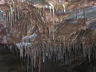 • Gadime Marble Cave is located 20 kilometers from the city of Prishtina. It is 1,276 meters in length and the volcanic lava and tufa accumulation on the marble dates back to the time of the formation of the Kosovo Valley.[65]