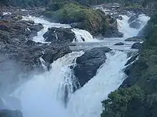 - Shivanasamudra Falls (also called Sivasamudram) is an island town dividing the Kaveri River into twin waterfalls, the Gaganachukki and the Barachukki, dropping 90 m. The town is located 120 km from Bangalore, 27 km from Somanathapura and 80 km from Mysore in the Mandya district of the state of Karnataka.