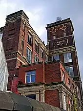 Built for Christian Koch, this 4 storey mill is similar to River Mill, but more ornate being a Potts design. It had 44,000 spindles and 5000 twiner spindles, doing coarse counts. The River and Tower Mills Co Ltd (1912) ceased spinning at River Mill in 1934, but by increasing the reliance on ring spinning kept Tower going until 1955. On closure it had 13,000 mule and 24,000 ring spindles.[3]