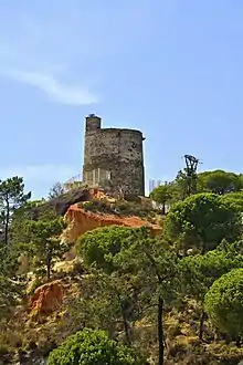 Although it is currently known as Torre del Catalán, it was officially mentioned as Torre de Sierra Bermeja until well into the 18th century.[2] The toponym Sierra Bermeja is due to the height of the hill on which the tower stands, reddish or bermejo in color. However, there is evidence of the use of El Catalán to refer to this area in the Old Ordinances of the 16th century preserved in the Municipal Archives of Lepe.[3]