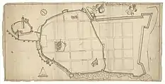 ![]() Vyborg Castle with Tower of St. Olav in the city map of Vyborg (1642) | |