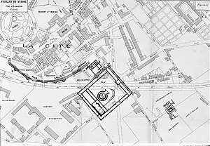 The construction of the Périgueux – Brive railway line, put into service in 1860, and the development of neighboring streets led to the destruction of the remains of the vast enclosure that protected the temple.[4]
