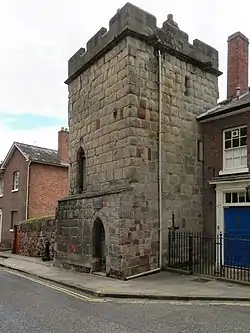 Town Walls Tower (officially Wingfield's Tower) is the last remaining medieval watchtower belonging to the former town walls of Shrewsbury, Shropshire, England, UK. The fortified structure, which was finished in the 14th century, was used to observe the land south of the town and across River Severn. It is under the care of the National Trust.