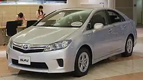 The Toyota Sai is a hybrid electric car sharing the same platform and hybrid drivetrain as the Lexus HS. It was launched in Japan on October 20, 2009,[2] following the launch of the Lexus HS in January of the same year.[3] Toyota received about 14,000 orders in one month after its introduction, and the Sai is available at all Toyota Japanese dealership sales channels.[4]