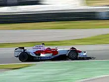 The Toyota TF108 was a Formula One car with which Toyota competed in the 2008 Formula One season. The chassis was designed by Pascal Vasselon, John Litjens and Mark Gillan with the engine being designed by Luca Marmorini and Noritoshi Arai overseeing the entire project. The cars best finish was second in the Hungarian Grand Prix, driven by Timo Glock.