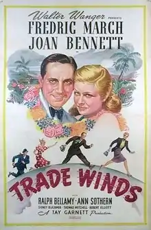 Trade Winds is a 1938 American comedy murder mystery film directed by Tay Garnett written by Dorothy Parker, Alan Campbell, and Frank R. Adams, based on the story by Tay Garnett. The film stars Fredric March and Joan Bennett. It was distributed by United Artists, and released on December 28, 1938.