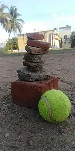 The denner tries to tag players who can climb up trees to escape; these players can try to touch a stick kept within a circle on the ground in order to become safe from the denner.[128][129] Variants of this game are also known as "Surparambya" or "Surparambi".[130][131][132][133]