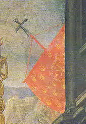 Also from the thirteenth century onward, some confusion in the naming of the crosses can be detected in the documents: while the Cross of the Field retains its name unchanged, the Illustrious Relic assumes the title of the Cross of the Oriflamme, when the latter was instead the second name of the Cross of the Field. The error, which remained unchanged for centuries, was corrected only from the nineteenth century onward, when the title "Cross of the Oriflamme" reverted to the second name of the Cross of the Field.[2][8]