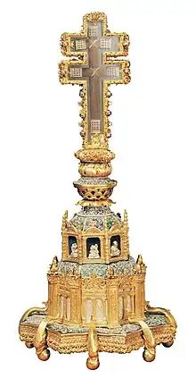 - the reliquary of the Holy Cross, made of silver and gold with enamels and gems, dating partly from 1487 and partly from 1532;