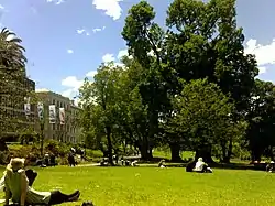 The Treasury Gardens consist of 5.8 hectares (14 acres) on the south-eastern side of the Melbourne central business district, East Melbourne, Victoria, Australia. The gardens are bounded by Wellington Parade, Spring Street, Treasury Place, and by the Fitzroy Gardens across Lansdowne street to the west. They form part of a network of city gardens including Fitzroy Gardens, Carlton Gardens, Flagstaff Gardens and Kings Domain. The gardens are listed on the Australian National Heritage List and the Victorian Heritage Register for their historical, archaeological, social, "aesthetic and scientific (horticultural) importance for its outstanding nineteenth century design, path layout and planting".[2]