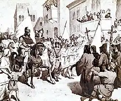 19th-century illustration of Vahan Mamikonian and his men returning to the Armenian capital of Dvin