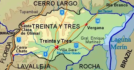 - ↑ "Breve reseña del departamento". Intendencia de Treinta y Tres. 2011. Archived from the original on 22 August 2012. Retrieved 19 September 2012.
