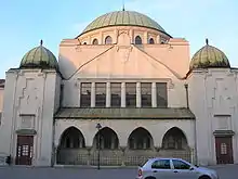 The Jewish population of the city was around 2000 members.[1] In 1913, the Jewish community built the building on the site of a previous wooden synagogue from 1781.