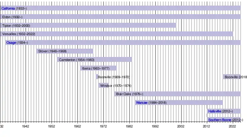 Southern Boone High SchoolHallsville High School (Missouri)Warsaw High School (Missouri)Osage High School (Missouri)California R-1 High School