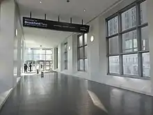 The first Vesey Street Bridge (40°42′49″N 74°0′49″W / 40.71361°N 74.01361°W), or North Bridge, connected the above-ground concourse of the former World Trade Center complex with the World Financial Center,[3] paralleling nearby Vesey Street. It began at a point between 1 WTC and 6 WTC linking the upper levels of the Winter Garden Atrium. The grand marble staircase inside the Winter Garden pavilion provided access to the lower levels of the building and to the adjacent waterfront.[4] The bridge was destroyed in the collapse of 1 WTC during the September 11 attacks in 2001.[5]