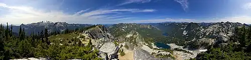 The Alpine Lakes Wilderness features some of the most rugged topography in the Cascade Range with craggy peaks and ridges, deep glacial valleys, and granite walls spotted with over 700 mountain lakes.[5] Geological events occurring many years ago created the diverse topography and drastic elevation changes over the Cascade Range leading to the various climate differences.