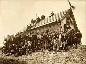 The first hut, named the Triglav Hut (Triglavska koča), was built in 1896 at the initiative of Jakob Aljaž. Later it was expanded three times, and it is now one of the largest mountain lodges in Slovenia. It can accommodate 200 hikers or more. In 1909, the Ljubljana Matica Alpine Club expanded the hut and renamed it the Triglav Lodge (Triglavski dom). In 1954, it was expanded again due to the increased number of visits after World War II. It was expanded for the last time in 1983.