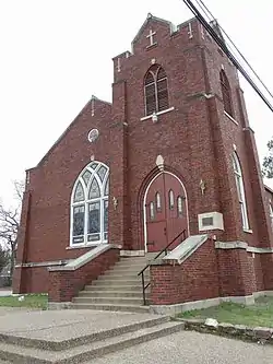 The late Gothic Revival church building was constructed in 1922 and added to the National Register of Historic Places in 1995.