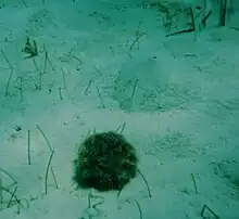 The West Indian sea egg feeds on algae but tends to avoid the crustose, highly calcified coralline algae.[3]