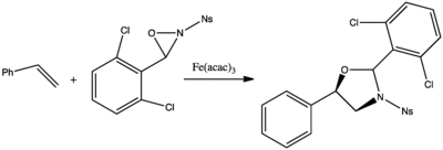 Fe(acac)3 also catalyzes the ring-opening polymerization of 1,3-benzoxazine.[7] Beyond the area of polymerization, Fe(acac)3 has been found to catalyze the reaction of N-sulfonyl oxaziridines with olefins to form 1,3-oxazolidine products.[8]