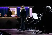 In late 2018 Yearwood announced the release of a new album consisting of songs previously recorded by Frank Sinatra. Titled Let's Be Frank, it was recorded live at the Capitol Records building and was backed by a full piece orchestra. Yearwood used Sinatra's original microphone during the recording process. It was released in December 2018, exclusively at Williams Sonoma stores, and worldwide on February 14, 2019.[58] The album peaked at number 2 on the Billboard Jazz Albums chart.[59] In his review, Kevin John Coyne of Country Universe praised the release, giving it four of five possible stars. In discussing the album, Coyne commented, "Let's Be Frank is a delightful detour, and while it doesn't curb the hunger for more country music from the greatest female artist of the greatest generation of female artists, it is chock full of reminders of how she earned that distinction in the first place."[60] Trisha Yearwood performed the Sinatra covers on March 7, 2020, with the Baton Rouge Symphony Orchestra, conducted by Timothy Muffitt. Yearwood was invited to perform with the BRSO as the 2020 selection of the "Pennington Great Performers" series.
