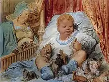 Notable performances of the Trois petites pièces montées during Satie's lifetime include conductor Gabriel Pierné's rendition with the Concerts Colonne on December 17, 1921,[32] and Vladimir Golschmann's four presentations in concerts sponsored by the Ballets suédois (October 25 to 31, 1923). [33] In June 1924, choreographer Leonide Massine assembled two of Satie's piano duets, Trois morceaux en forme de poire (1903) and the keyboard reduction of the pièces montées, into the ballet Premier Amour for the Soirées de Paris stage company at the Théâtre de la Cigale. It was a solo number starring Lydia Lopokova as a girl who dreams she falls in love with a doll. Satie and Marcelle Meyer played the piano during its handful of performances.[34][35] Since Satie's death the original version of the suite has been largely neglected, even by conductors (Maurice Abravanel, Michel Plasson) who committed much of his modest orchestral catalog to disc.[36]