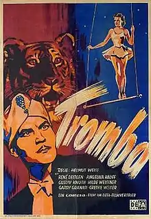 Tromba is a 1949 thriller film co-written and directed by Helmut Weiss and starring René Deltgen, Angelika Hauff and Gustav Knuth. It is a circus film with elements of film noir.[1] It was one of the most popular West German films of the year, suggesting audiences supported a shift away from rubble films.[2] It was made at the Bavaria Studios in Munich with sets designed by art director Ernst H. Albrecht. The film was released in the United States in 1952 as Tromba: the Tiger Man by Lippert Pictures.
