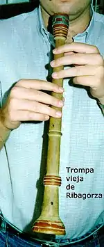 The trompa de ribagorza is a double-reeded wind instrument, revived by Mariano Pascual based oi instruments preserved in Graus, similar to those used in the 19th century by the pipers of Caserras del Castillo and other areas in Baja Ribagorza Oriental.
