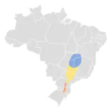 Tropeiro seedeaters breed in upland shrubby grasslands associated with the Araucaria forests of southern Brazil. They migrate northwards to spend the austral winter – the non-breeding season – in the Cerrado savannas of central Brazil. The range contains a narrow contact zone between the Tropeiro and plumbeous seedeaters, where the birds are segregated by habitat that contains little significant gene flow.[2]
