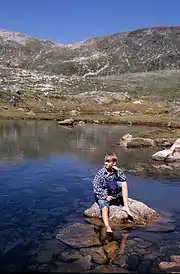 A well-used trail starts here and climbs 300 m (984 ft) through a band of trees to the alpine meadows. The leisurely hike of 3.1 km (1.9 mi) takes about 75 minutes to reach an abandoned shepherd's hut. During the last 30 minutes, there are views of the north face of Raft Mountain across Spahats Creek Valley to the south. This section of the meadows has colourful flower displays in late July and early August, as well as an earlier bloom of glacier lilies in late June. The trail continues past the hut for 30 minutes to the Sheila Lake Lookout. This viewpoint encompasses Sheila Lake to the north, Plateau of Lakes with numerous tarns to the northeast, and four of the nine Trophy summits beyond that. Raft Mountain and the spire of Dunn Peak are to the south.[3][5]