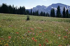 Trophy Mountain (locally called Trophy Mountains or The Trophies) is a mountain in east-central British Columbia, Canada, located in the south-east region of Wells Gray Provincial Park. The Clearwater River flows to the west, Raft River to the east and Spahats Creek to the south. Trophy Mountain is part of the Shuswap Highland. There are nine summits in the group and the highest is 2,577 m (8,455 ft). Battle Mountain and Table Mountain are the closest summits to the north and Raft Mountain is immediately south.[3] Trophy Mountain was given its name by Dan Case, a big-game hunting guide in the area.[4]: 273