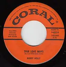 "True Love Ways" is a song attributed to Norman Petty and Buddy Holly. Buddy Holly's original was recorded with the Dick Jacobs Orchestra in October 1958, four months before the singer's death. It was first released on the posthumous album The Buddy Holly Story, Vol. 2 (Coral 57326/757326), in March 1960. The song was first released as a single in Britain in May 1960, reaching number 25 on the UK Singles Chart. It was released the following month in the US, but did not make the charts. In 1988, a UK re-release of the recording by MCA, the single reached no. 65 on the UK singles chart in a 5 week chart run.[2]