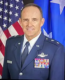 Major General Trulan Arthur Eyre (born September 2, 1957) received his USAF regular commission in 1979 as a graduate of the United States Air Force Academy. He has served in numerous assignments in flying and operations, as well as command positions at the squadron, group, and wing levels. He also served as the United States Air Force F-16 European Demonstration pilot and the Deputy Director of the Air Coordination and Control Element, US Embassy, Baghdad, Iraq. Eyre joined the Colorado Air National Guard in 1988 as a traditional member, and a pilot for Delta Air Lines. He commanded the 140th Wing, Colorado Air National Guard, Buckley Air Force Base, Colorado 2007-2013. As Wing Commander, he was responsible for over 1500 personnel in support of F-16C+ (Air Combat Command) fighter and C-21 (Air Mobility Command) airlift aircraft missions, as well as 137th Space Warning Squadron (Air Force Space Command) and Civil Engineering (Pacific Air Forces) missions.[1]