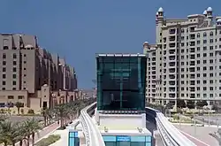 ![]() The Al Ittihad Park (formerly Trump Tower) monorail station on the Palm Jumeirah, located at the proposed site of the skyscraper | |
