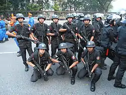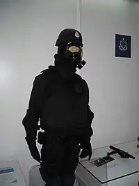 The Prisons Department are required to deploy such a unit because many high-profile criminals and terrorists are detained, including those under the Internal Security Act (ISA). This unit liaises with other agencies, including the Pasukan Gerakan Khas and Royal Malaysian Navy's PASKAL which are also involved in national security.[1] The TTC duties include transport of high risk inmates, extracting uncooperative prisoners from their cells, daily full cell searches and high-profile security, barricaded persons, riots, mass arrest, high risk/high-profile transport and hostages situations, as well as crowd control.