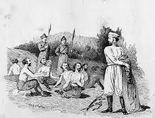 Around 1246,[8] Tsotne Dadiani joined other Georgian nobles in a clandestine meeting at the castle of Kokhtastavi, in Javakheti, to discuss an overthrow of the Mongol overlordship. The Mongols promptly learned about the summit and rounded up its participants, who, having no troops by their side, surrendered without resistance. The only survivors were Tsotne and the eristavi of Racha who had left earlier to recruit troops in their remote provinces. The arrested Georgian dignitaries, on being brought to Shirakavan before the noyan Chormaqan, insisted that they had no intention of rebelling, but had merely met to arrange the levying of the kharaj, or tribute to be paid to the Mongols. The noyan did not believe this and had the Georgians stripped naked, bound their hands and feet, and left suffering under the scorching sun,.[7] According to one account, from Prince Vakhushti's history, their bodies were smeared with honey to attract insects.[9]