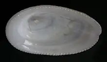 Dorsal view of a shell of Tugali elegans, from Langs Beach, New Zealand