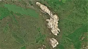 Tukulans come in the form of isolated dunes, but also as large sand-covered areas in certain spots of the plain, often among the trees of the taiga.[2] The largest of the dunes lies at 65°08′01.6″N 122°58′00.7″E / 65.133778°N 122.966861°E near the Linde River and reaches almost 40 kilometres (25 mi) in length.[3]