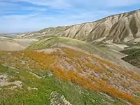 The Tumey Hills are a low mountain range in the interior California Coast Ranges, in western Fresno County, California.[1] The Tumey Hills area is part of the U.S. Bureau of Land Management (BLM), which is a division of the United States Department of the Interior. This BLM land is under Fire Season Vehicle Restrictions from mid-April to mid-October. No motorized access is allowed during this time period.[2]